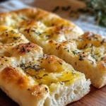 A delightful gluten-free focaccia bread with a crispy exterior and soft interior, perfect for dipping or enjoying on its own.