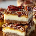 Delightful bars combining creamy cheesecake and crunchy pecans with a gooey topping, perfect for any occasion.
